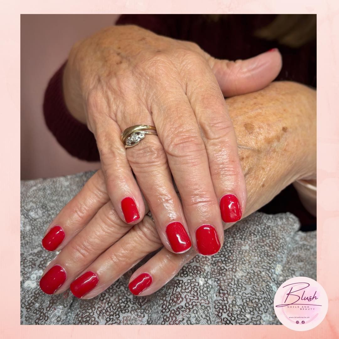 Nails filed and shaped and cuticles tidied. Gel colour of choice applied. Finished with cuticle oil: £27
